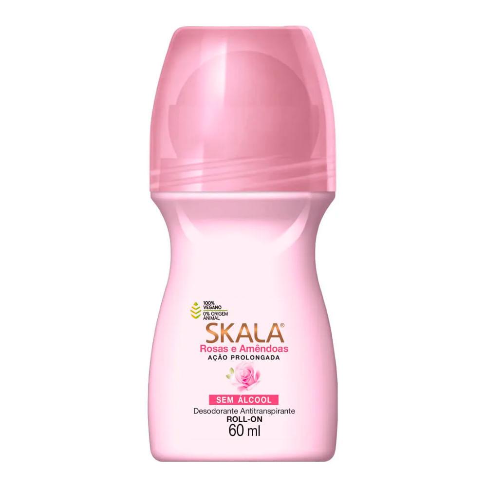 A roll-on deodorant with a soft touch, part of the Skala daily care line, enriched with almond oil and rose extract, designed to provide effective odor protection while lightly moisturizing and perfuming the underarms